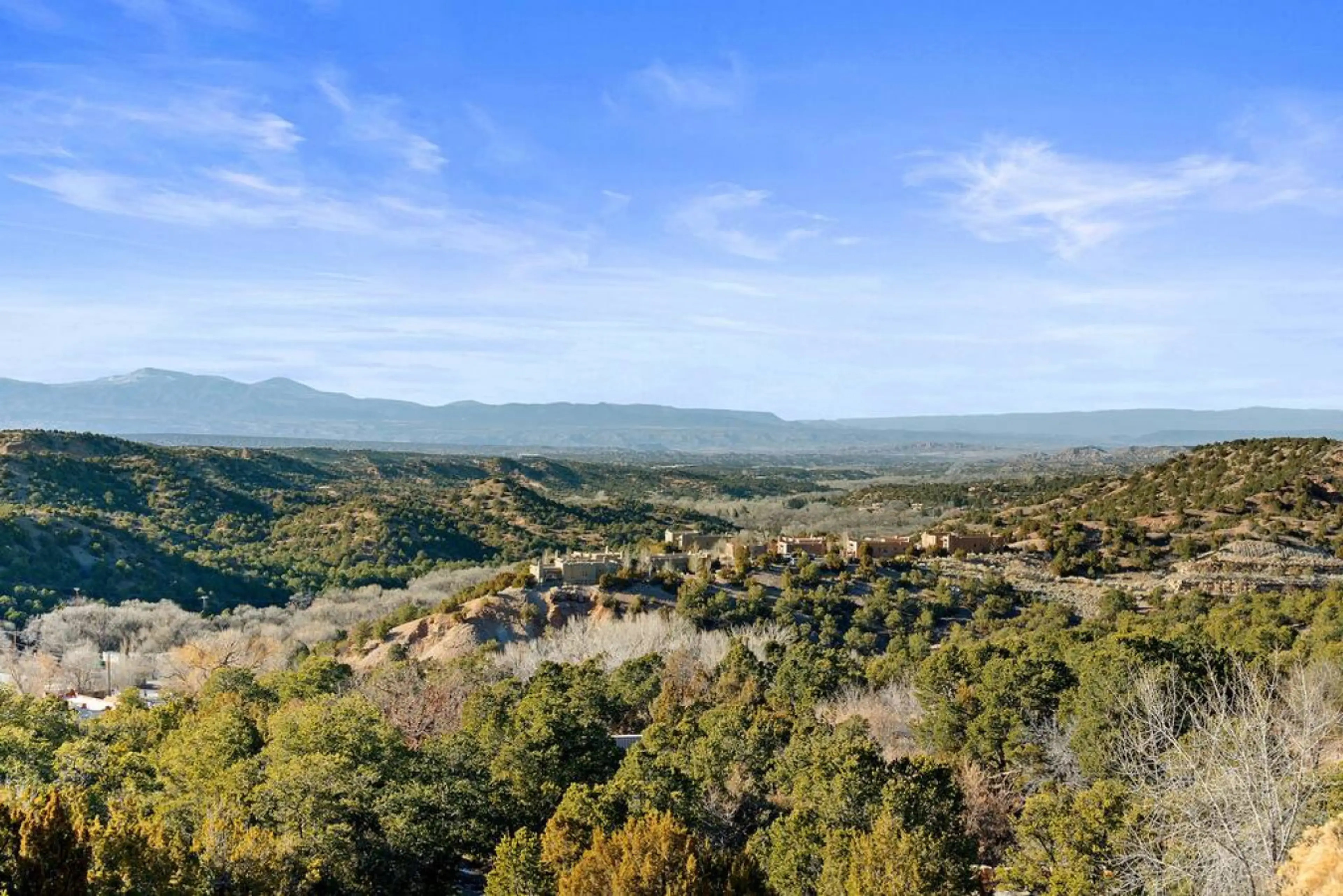 Resting in the foothills of the coveted gated community of Bishop's Lodge Villas, at the end of a private cul-de-sac, this property is only minutes from the Plaza yet offers secluded outdoor space with forever views to the northwest. Approximately 2150 square feet. Guests have access to two swimmi...