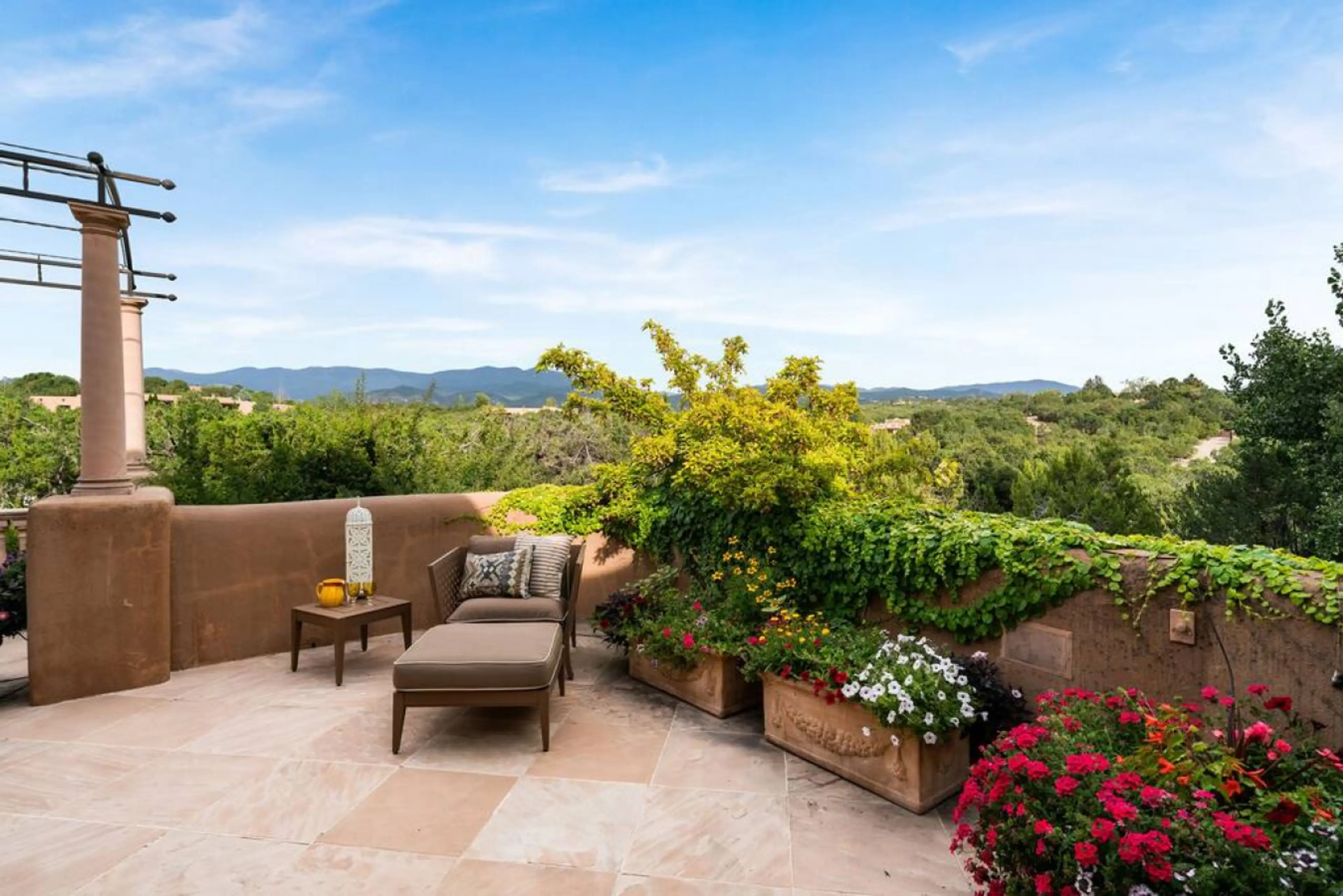 This stunning and spacious property, over 2.5 acres in total, is a once-in-a-lifetime spot for a luxury vacation experience in the picturesque North Hills of Santa Fe. With 6 bedroom suites situated in private wings, extraordinary architectural and design touches in the classic adobe style, a centra...